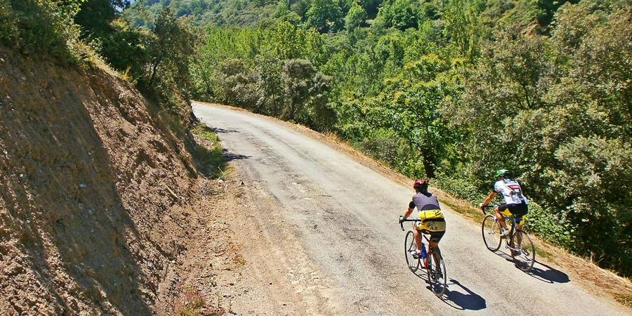 | Especificaciones: Carretera estrecha y de tráfico abundante. El asfalto se halla en malas condiciones en algunos tramos y la sombra no nos va a abandonar prácticamente en toda la ascensión. |