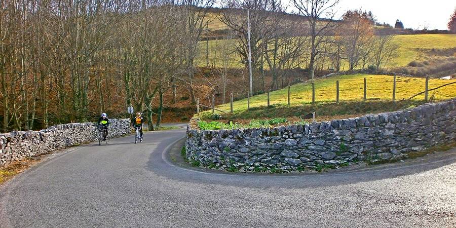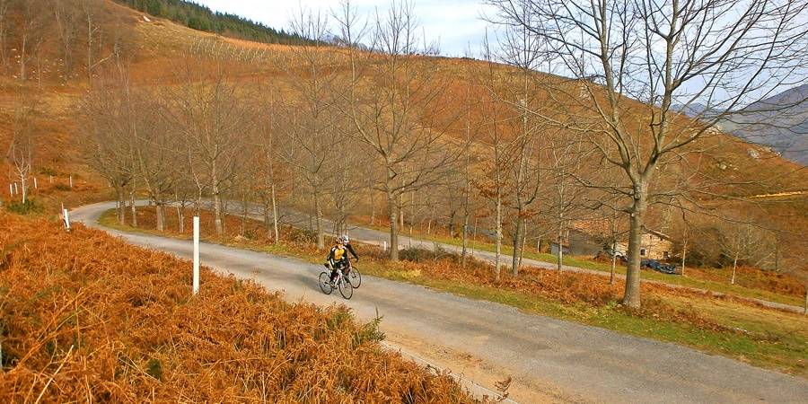 Descripción: Lesaka es la capital del municipio del mismo nombre, lindante con la provincia de Gipuzkoa. Junto a los de Aranaz, Bera de Bidasoa, Etxalar e Igantzi forman la comarca navarra de las Cinco Villas, en el valle del río Bidasoa, la zona más norteña de la provincia. En la actualidad Lesaka es eminentemente industrial debido a la gran acería existente y cuyo origen fue la empresa Laminaciones de Lesaca fundada en 1958. Llegó a contar con poco menos que dos mil trabajadores, casi tantos como los habitantes de la villa. En la actualidad solo son unos 300. Esta industrialización no ha hecho mella en el casco urbano que sigue manteniendo ese aire rural y su trazado medieval. Antes de iniciar la ascensión, aconsejamos un paseo por sus laberínticas calles junto al arroyo Erroizko. Sus dos torres medievales, casas señoriales, palacios y variopintos caserones de todo tipo, a buen seguro sorprenderán a quien no la conozca. También os sorprenderá la ascensión, porque tiene casi todo lo que se puede pedir a un puerto. Vale que es un poco corto, pero su coeficiente de dificultad ya indica que no es una perita en dulce. Carretera en buen estado y sin grandes tramos rectos, sombras, apenas tráfico, vistas…, vamos a ello. Llenamos el bidón en la fuente y arrancamos. La pendiente va aumentando poco a poco y a mitad del primer kilómetro ya estamos en el 10% y antes de finalizarlo habremos llegado al 15%. En el segundo, de cierta dureza, describimos hasta seis curvas de vaguada y herraduras dentro de un frondoso y fresco bosque. Luego la pendiente va menguando hasta llegar al cementerio de Igantzi donde vamos a la izquierda hacia los caseríos de Frain, teniendo que superar un duro pero corto repecho para llegar a ellos. Tenemos ahora kilómetro y medio muy llevadero, exceptuando un corto repecho que llega al 15%, para disfrutar de buenas vistas hacia las primeras cimas de Pirineos. Y llega la guinda final. Tras trazar dos herraduras encadenadas, afrontamos el repecho más duro de todo el puerto: 800 m al 13% de pendiente media, con máxima del 17%. A buen seguro un lugar donde si hay algún colega peleón, intentará demostrarnos su estado de forma. Pero tranquilos, que no correrá mucha sangre porque en un pispás estamos en la cima. Toca refrescarnos un poco y disfrutar de las magníficas vistas en 360ª: Peñas de Aia, el mar a la altura de Pasaia y San Juan de luz, las primeras cimas de Pirineos con el monte Larrun (La Rhune para los franceses)… existe una mesa de piedra o mármol con un mapa indicando los topónimos de las vistas. |