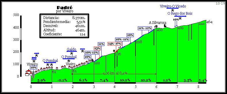 Hasta alcanzar el km 5,5 donde la pendiente sí baja del 8%, aunque tampoco demasiado.