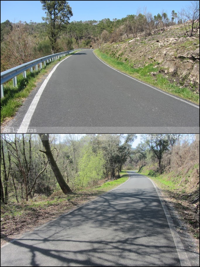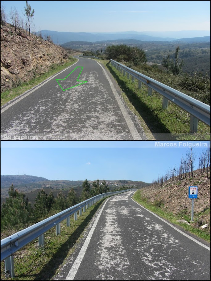 Aquí entraréis en la N-120 dirección a Vigo, dejando atrás unas duras rampas y regresando a la pendiente regular y relativamente tranquila de esta primera mitad del puerto.