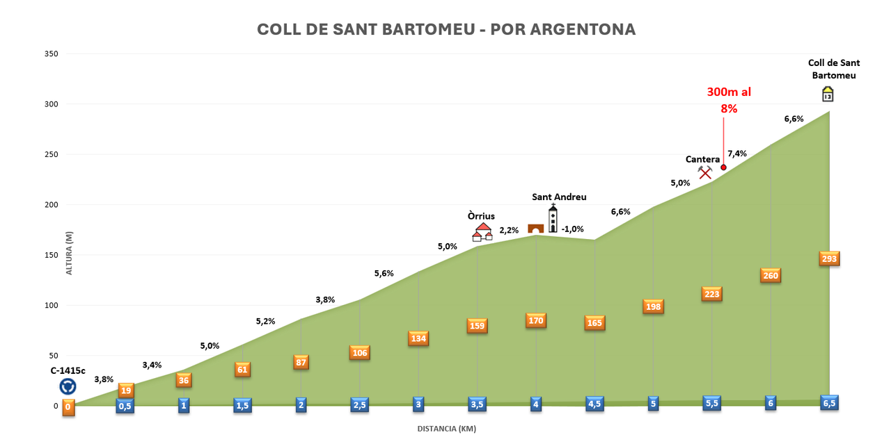 Si hemos ido muy confiados hasta Òrrius hay que ir con cuidado porque ahora la dureza se incrementa. Dejamos atrás el tráfico y encontraremos algunas rampas considerables.