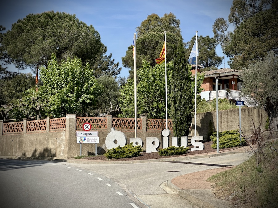 Después de 3,6km llegamos a Òrrius donde unas grandes piedras talladas con el nombre del pueblo nos dan la bienvenida.