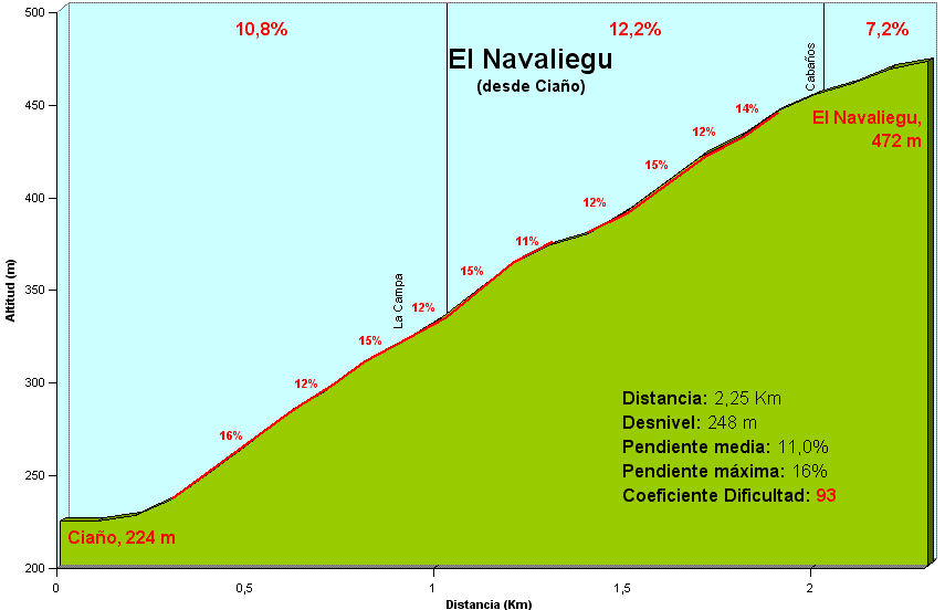Comentario: La corta y dura subida hacia El Navaliegu parte de una estrecha carretera que transcurre por el margen izquerdo del parque de Ciaño.