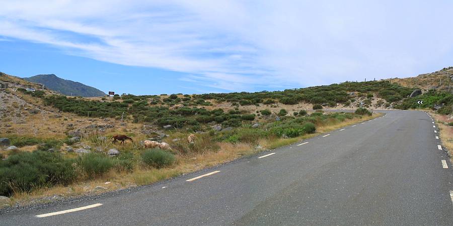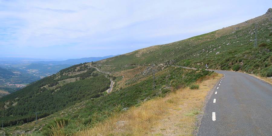 | Fuentes: Aunque el puerto es largo no vamos a tener dificultades para aprovisionarnos de agua. Encontraremos al menos seis fuentes bien repartidas a lo largo de la ascensión. La primera, junto a la plaza de toros de Santa Cruz. Otra en el parque de El Rollo y varias más en San Esteban. En el Km 13,7 la fuente del Veneno, muy escondida en la cuneta. Las de los kilómetros 18 y 22 son más aparentes. |