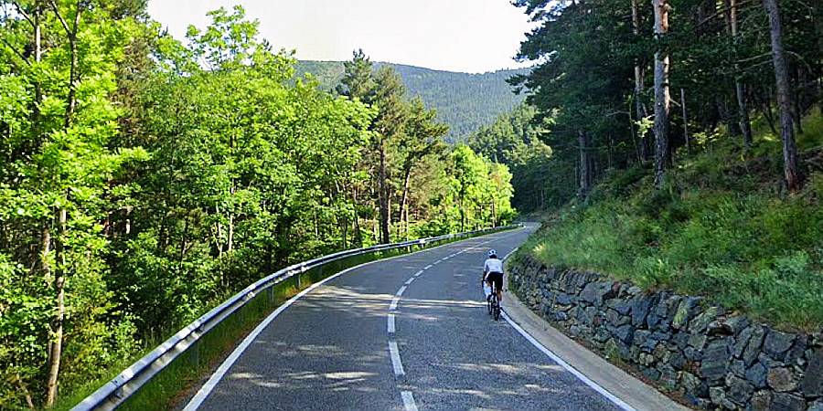 | Especificaciones: Carretera en perfecto estado con señalización completa, aunque carente de arcenes. A pesar de que toda la ascensión discurre por terreno boscoso, no vamos a encontrar demasiadas sombras y ninguna en la segunda mitad. Tráfico no demasiado relevante para ser una carretera nacional. |