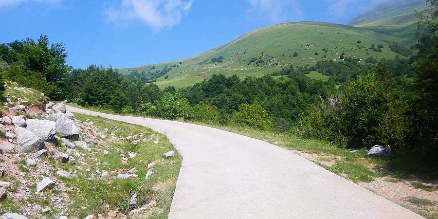 Descripción: Sant Joan de les Abadesses es el tercer municipio más habitado, tras Ripoll y Campdevánol, de la bella comarca gerundense del Ripollés. Sin embargo, en la web de Catalunya Turisme citan a esta localidad como, textualmente, “el pueblo más pequeño de todo el Ripollés”, cosa que es absolutamente incierta, porque según los datos no lo es, ni en número de habitantes ni en extensión. Hacemos este comentario porque ciertamente nos ha sorprendido. En la parte vieja de la localidad destacan varios edificios, pero especialmente su espléndido monasterio románico, fundado en el siglo IX. La iglesia actual data del XII. Y luego está el espectacular Pont Vell sobre el Ter, originalmente también de ese siglo que resultó dañado en un terremoto en 1428 y reconstruido en estilo gótico. Fue dinamitado en 1939 y vuelto a alzar en 1976. Esta es la vertiente sur de este puerto, más larga y con mayor desnivel que la opuesta, aunque presentan características similares: una primera parte asfaltada y la parte final hormigonada, aunque en este caso el tramo que presenta ese firme es el doble de largo y mucho más irregular en cuanto a pendientes se refiere. También es una zona muy boscosa, incluso más que la opuesta, lo que hace que no tengamos demasiadas vistas, pero sí una paz absoluta. Salvo una rampa de 200 m en el mismo inicio, la parte inicial es muy llevadera hasta llegar a Ogassa. Al salir de esta localidad nos topamos con la parte más dura, dos kilómetros al 11 y 12% de pendiente y hasta el 19% de máxima, separados por un tramo más suave de 300 m. A continuación, siguen una serie de escalones en los que pasamos de un 0% a un 15% de forma brusca y con máximos del 18%. En el km 10 llegamos a la modesta ermita románica de Sant Martí donde encontramos un buen tramo llano junto a unas masías. A hidratarse y recuperar fuerzas porque, al final del mismo, la pista se estrecha aún más y nos topamos de bruces con un kilómetro largo al 12% que se inicia con un 15%. Hasta poco antes de coronar, solo vamos a ver la pista ya que el denso arbolado casi ni nos va a permitir vislumbrar el cielo. Los dos kilómetros que quedan hasta el Coll de Jou van a ser exigentes, pero ya sin rampas significativas. En el collado encontramos un paso canadiense, el cartel del puerto y un poste hacia varias direcciones. Solo tenemos unas pocas vistas hacia el lado por donde hemos subido ya que aún restan 600 m muy suaves para llegar al punto más alto, en medio de un bosque. Y ahí tampoco veremos nada. Tendríamos que descender un par de kilómetros por la otra vertiente para gozar de espléndidas vistas. |
