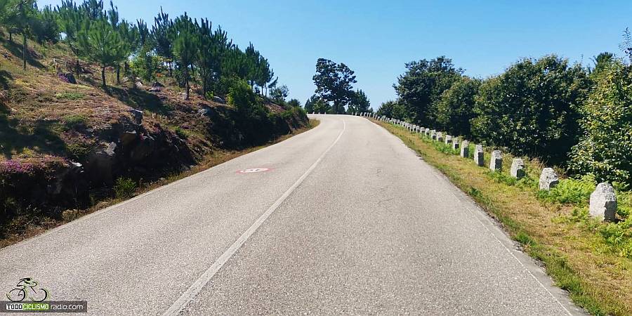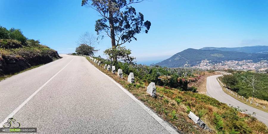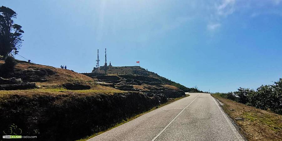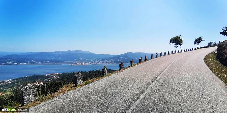 Descripción: A Guarda es el municipio costero gallego más meridional, asentado en la desembocadura del río Miño, lindando con Portugal. Hay evidencias de pequeños asentamientos poblacionales desde hace 12000 años. Dada su estratégica situación, bastante después fue lugar de contactos con fenicios y griegos. El mayor asentamiento, el espectacular Castro de Santa Trega junto al que pasaremos en la ascensión, tuvo lugar hacia el siglo I a.C. y apenas se mantuvo un par de siglos, ya que con la llegada de los romanos sus moradores se fueron asentando en los valles para cultivar la tierra. En la cima del monte encontramos un pequeño museo con restos arqueológicos y la Ermita de Santa Trega (Tecla), originaria del siglo XII, pero con muchas reformas posteriores. Probablemente a más de uno le sorprenderá que, con todo lo que hay por Galicia, este puerto con tan escaso coeficiente de dificultad haya sido incluido dentro de Reto CIMA que recoge los más importantes de la península e islas. Pero quienes se precian de ser amantes de puertos, primero valoran la historia ciclista y la dificultad, pero también la belleza del mismo. Y éste, rebosa belleza por sus cuatro costados. Presenta una pendiente bastante regular y exigente de entre el 7 y 8%, con algunas puntas que llegan al 10%. Pero es muy corto y no nos va a exigir un exagerado esfuerzo. Hasta llegar a la barrera de peaje en el km 1,3 ya habremos tenido unas fugaces vistas hacia A Guarda y la costa. A partir de aquí, una serie de nueve herraduras nos permitirán continuos cambios de vista hacia el Atlántico y hacia la ría del Miño. Varios miradores nos permitirán contemplarlas con mayor tranquilidad si así lo deseamos. Mediado el tercer kilómetro atravesamos los restos del espléndido Castro de Santa Trega y aquí sí que merece la pena una parada porque todo lo que nos rodea es puro espectáculo. Y si no es subiendo, que sea al descender. Es de esos lugares que nunca se olvidan. Lo que resta hasta coronar, sigue en la misma tónica. Y para qué contaros las vistas desde la explanada de la cima donde no falta el típico “cruceiro”. Ascensión absolutamente recomendable.