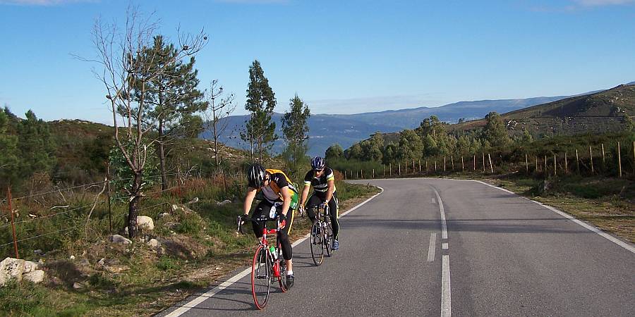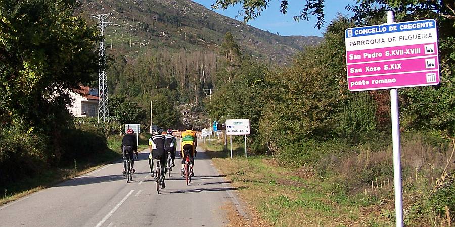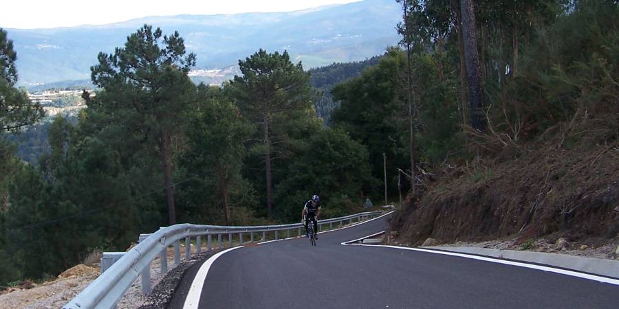 Descripción: Una ascensión un poco rebuscada ya que al poco del inicio se mete por una carreterilla vecinal, y es conveniente llevar la ruta en algún dispositivo para seguirla. No olvidemos que estamos en Galicia y muy a menudo lo que indican las señales de la carretera poco o nada tiene que ver con lo que reflejan los mapas. En cualquier caso, los mapas están recogidos en cada altimetría, pero hay que tener en cuenta la posibilidad de que no haya cobertura en estos lugares recónditos. Cien metros después de coger la PO-400, hay que tener cuidado de ir a la derecha en un cruce señalizado hacia Caballás y Guillade que son dos de las aldeas que componen la parroquia de Filgueira (con este nombre solo aparece la iglesia). Entramos así en la carretera vecinal que nos lleva hasta el núcleo principal de Filgueira, al final del primer kilómetro, donde se encuentra su iglesia de San Pedro. La pendiente en este tramo ya se sitúa en un 7%. Siguen 300 m casi llanos, antes de darnos de bruces con el repecho más duro del puerto. Va a ser al llegar a la primera de cuatro herraduras enlazadas cuando la cosa se pone muy seria, teniendo que superar más de 300 m al 16% de pendiente media y máxima del 20% o incluso más por el interior de alguna herradura. Sigue luego un kilómetro largo con perfil muy irregular, en el que seguiremos teniendo una pendiente media por encima del 10%, pero con continuos picos de hasta del 15% o incluso del 18% poco antes de llegar a la PO-406. Seguimos esta carretera durante unos 2 km, que comienzan con una larga recta por encima del 8%. Es una de esas carreteras tediosas, casi rectilínea y en la que, con sus tres carriles y su amplitud, tienes la sensación de no avanzar. Y si pega el sol, para qué contar. Por lo menos, en la parte final la pendiente va menguando. Justo cuando llegamos a la parte más alta, en la aldea de Os Pedrosos (que para no variar no está indicada), tomamos el cruce a la derecha hacia Aldea de Arriba. Ya solo queda kilómetro y medio por una carretera más amena, un poco más estrecha, con pendiente variable pero llevadera y sin estridencias. No hay cartel de puerto ni vertiente opuesta. Esta carretera finaliza 1 km después, por terreno llano, en A Ameixeira. |