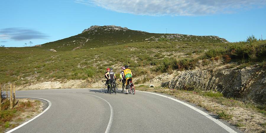 | Especificaciones: En los primeros 400 m y a partir del km 3,3 carretera amplia, perfecta y con señalización completa. El resto, carretera estrecha, con asfalto aceptable, carente de señalización horizontal y la vertical limitada a algunos cruces. Algo de tráfico en la PO-406, que tampoco es demasiado peligroso ya que dispone de doble carril de ascenso y tiene un pequeño arcén. No hay muchas sombras, pero por suerte están en los repechos más duros. |