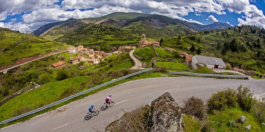 | Descripción: Por esta vertiente la subida es más fácil que por su opuesta, aunque siempre por encima del 6% de pendiente media. El paisaje de verdes praderas en las inclinadas laderas de las montañas circundantes va ganando en atractivo a medida que ascendemos, quedando a nuestra izquierda un enorme barranco que atrae nuestra atención hacia el vacío. Si, en cambio, es en verano cuando realizamos la ascensión habrá quien diga que más bien le recuerda a un desierto, mostrándonos su lado más salvaje. Podemos mirar hacia arriba y ver a lo lejos el final de la escalada y todo el recorrido que nuestra ruta irá describiendo en los siguientes kilómetros. El trazado de la carretera se nos aparece muy escénico, serpenteando por un terreno muy despejado, sin vegetación. En todo el puerto solo tendremos 100 m de descanso que nos vendrán de maravilla si subimos a tren para recuperar el aliento y observar, complacidos o con pesar, dónde han ido quedando nuestros compañeros. Aunque en alguna Vuelta a La Rioja ha sido catalogado de 1ª categoría no pasa de 2ª, a no ser que tengamos en cuenta que desde el mismo Logroño la carretera no deja de ascender continuamente. En el alto, donde entramos en La Rioja, la vista panorámica sobre la vertiente ascendida, que se aprecia casi en su totalidad, es espléndida, pero no desmerece tampoco el paisaje sobre el angosto entorno de Las Viniegras. |