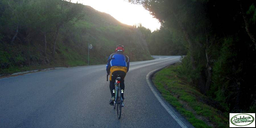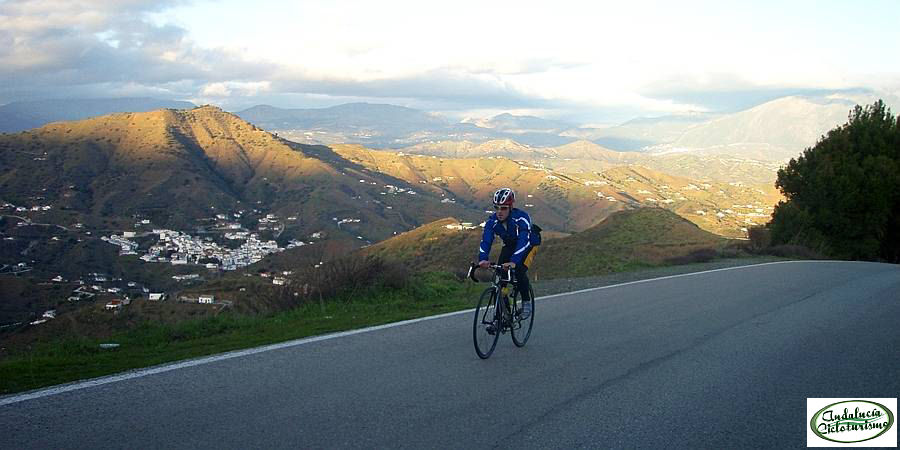 | Especificaciones: Carretera de unos 5 m, en perfecto estado y señalización completa exceptuando la línea de separación de carriles. Ni una sola sombra hasta Almáchar, pero bastantes más de las que se podría suponer en la parte final, proporcionadas por pinos plantados en los laterales de la carretera. Escaso tráfico. |