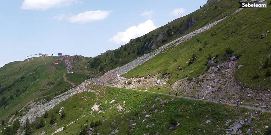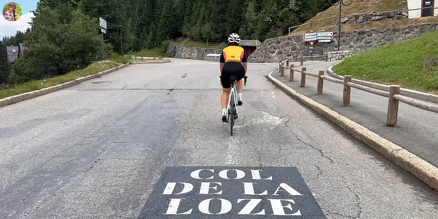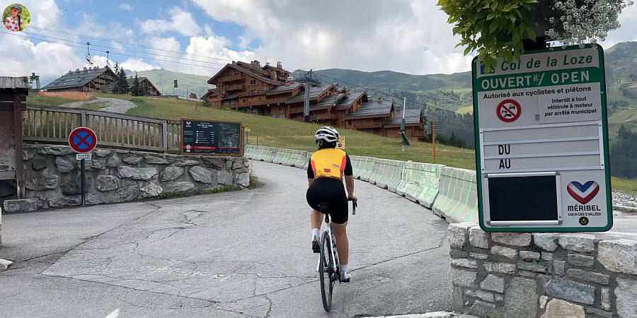 Descripción: Vertiente del Col de la Loze de relativamente nuevo cuño, ya que la parte final se asfaltó a finales de 2019. Fue final de una gran etapa del Tour de Francia en 2020, ganada por Miguel Ángel López y con una épica batalla entre Roglic y Pogacar jugándose el liderato. Nos enfrentamos a un puerto muy largo, en el que debemos ir regulando nuestras fuerzas para llegar con suficientes reservas a la parte nueva del final que es un caos altimétrico. Si llegamos justitos, es más que probable que tengamos que echar pie a tierra en alguna rampa. Y cuidado con el desarrollo, que más de un profesional montó un 36x32. Comenzamos con una pendiente bastante moderada en los primeros cuatro kilómetros. Cuando dejamos el cruce hacia Brides les Bains a la izquierda, el tema cambia de forma radical. Antes de llegar a Les Allues tendremos que superar cinco duros kilómetros con una pendiente media del 8% sin ningún descanso y algunas zonas al 10-11%. Todo este tramo es a través de un espeso bosque, sin ningún núcleo habitado, aparte de una serrería grande, y trazaremos hasta seis curvas de herradura. Desde Les Allues a Méribel pasamos por hasta cinco pequeñas localidades, ahora con una pendiente más moderada. Llegados a la última localidad citada nos encontramos con casi 5 km que son prácticamente urbanos y diversas herraduras y cruces en los que hay que prestar atención para no despistarse. Hay que ir siempre en dirección al altipuerto. Aquí la pendiente se ha puesto de nuevo en una media del 7%. Al llegar a las últimas casas dejamos la dirección al altipuerto y giramos a la derecha hacia las pistas de esquí que es por donde han asfaltado la nueva carretera. Ya hemos comentado que los 7 km finales son un verdadero reto. Si se mira la pendiente media por kilómetro, no asusta demasiado. Pero es que se asfaltó una pista con el trazado que tenía y sin ningún desmonte, con lo que los cambios en la pendiente son tremendos. Podemos pasar del 20% al 0% y viceversa, en apenas diez metros. Y eso con máximos de hasta el 23%, te machaca. No hay más que ver el final de la citada etapa del Tour 2020. Los dos kilómetros finales son casi una recta y estás viendo lo que te viene encima. Además, aunque los vehículos a motor están prohibidos, no lo están las bicicletas eléctricas que te pasan como una exhalación, minándote más la moral. Y no hay que olvidar que estamos por encima de los 2000 m y esto también se cobra su peaje. A buen seguro que las impresionantes vistas desde la cima, Mont Blanc incluido, compensarán el esfuerzo que nos ha costado llegar allí.