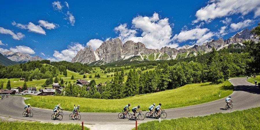 Tre Cime di LavaredoLas Tres Cimas hasta 1919 formaron la frontera entre Italia y Austria, pero ahora se encuentran entre las provincias Italianas de Bolzano y Belluno. El mayor de los picos, llamado Cima Grande, tiene una altitud de 2999 m; el más pequeño es conocido como Cima Piccola (2857 m); y el tercero es la Cima Ovest con una cota máxima de 2973 m. Podemos afirmar sin temor a equivocarnos que las Tres Cimas de Lavaredo son una subida durísima y, hasta la aparición de los puertos extremos en el ciclismo profesional, podríamos catalogarla como la más dura de todas las subidas que solían hacerse. Hoy en día, y con la variedad de desarrollos que las bicicletas ofrecen, la cosa ha cambiado mucho. Pero en su día había que echarle mucho valor para subir rampas tan duras, de forma continuada y por encima de los 2000 m de altitud. Sus tres vertientes van a confluir en el tramo final donde da comienzo la corta pero durísima ascensión hasta el Refugio Auronzo, en la base de las Tres Cimas. Esta vertiente oeste se inicia en la localidad de Cortina d’Ampezzo, a la que podríamos calificar como la auténtica “reina” de las Dolomitas. Hay pueblos bellísimos a lo largo de todo el macizo, salpicados por preciosas montañas rocosas y picos extraordinarios. Pero de todos ellos el más “chic” es sin duda Cortina. Darse un paseo por sus calles una tarde de verano es lo más parecido a una pasarela: restaurantes y tiendas de lujo, coches deportivos, hoteles exclusivos. Igual os encontráis con el mismísimo “007-James Bond”. Pues desde el mismo centro de Cortina arranca la subida a las Tre Croci, un puerto que no presenta grandes rampas, pero que es constante y hace daño en sus casi 8 km al 7% de media. Tras coronarlo, un suave descenso por espacio de otros 4 km nos conducirá al encuentro con la vertiente de Auronzo y a la breve ascensión a Misurina. Aquí el entorno es excepcional. Su lago ofrece todo tipo de actividades de recreo y se puede disfrutar de un café o una cerveza en alguna de las terrazas.