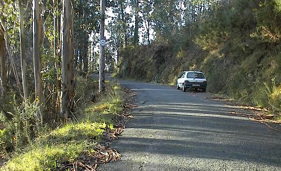 | Las sucesiones de curvas son menos espectaculares por este lado, aquí tenemos una muestra. Obviamente tras ver los porcentajes y fotos de la subida desde el puente hacia Monfero (dirección sur) esto nos parece una tontería, no obstante recordemos que ahora nos estamos moviendo por un 9%, que tampoco es manco |